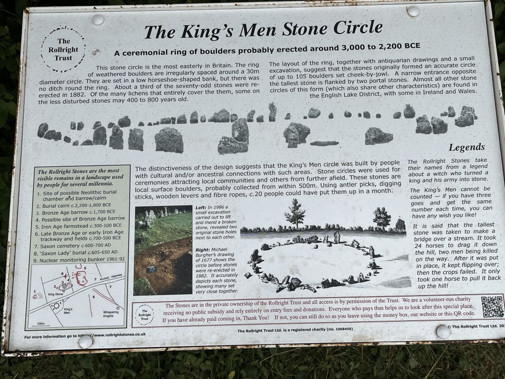 Made up of three sites – The Kings Men (main stone circle), the Kings Stone, and the Wispering Knights.